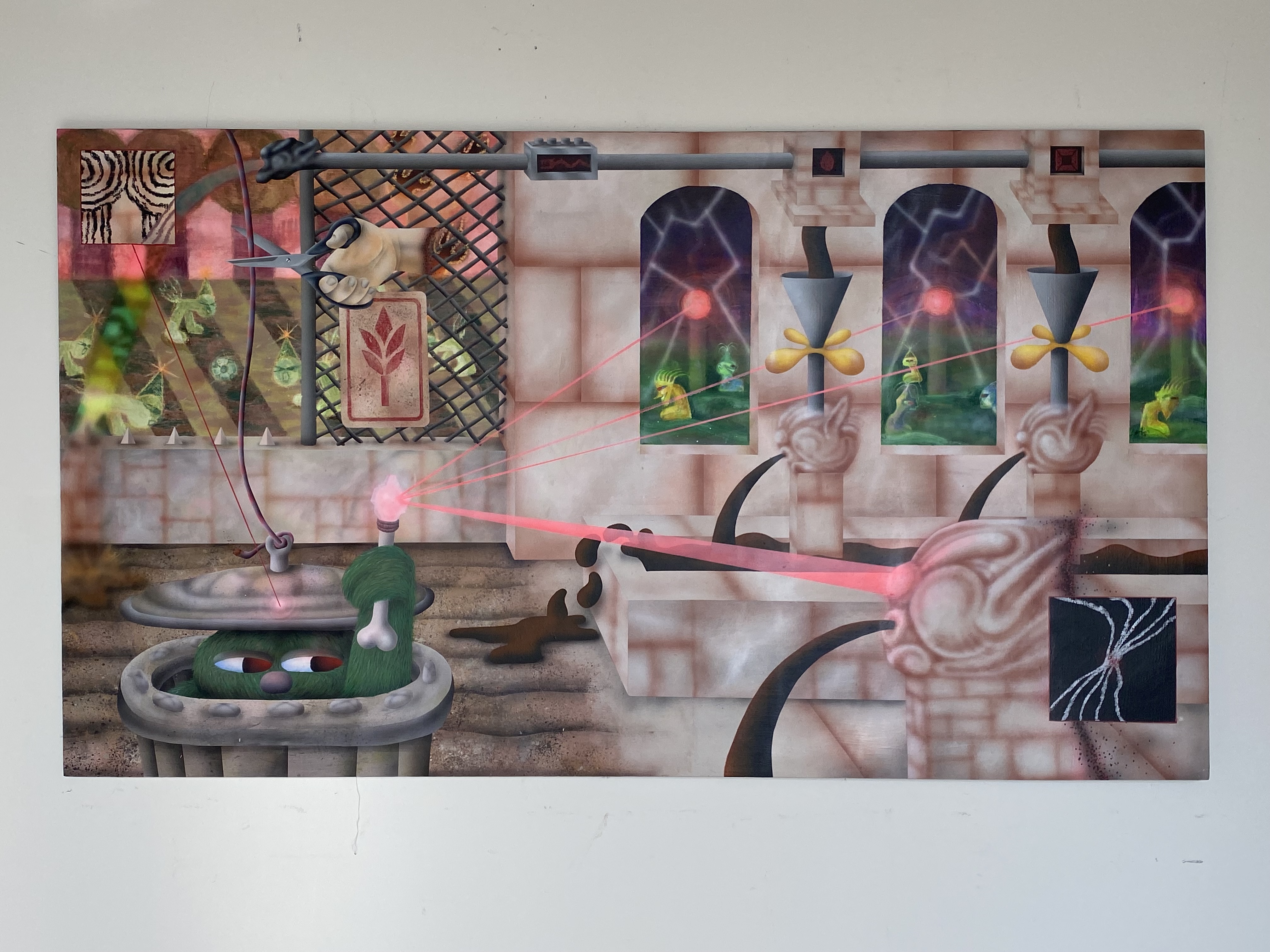 Medium: Oil on stretched canvas, wood and acrylic