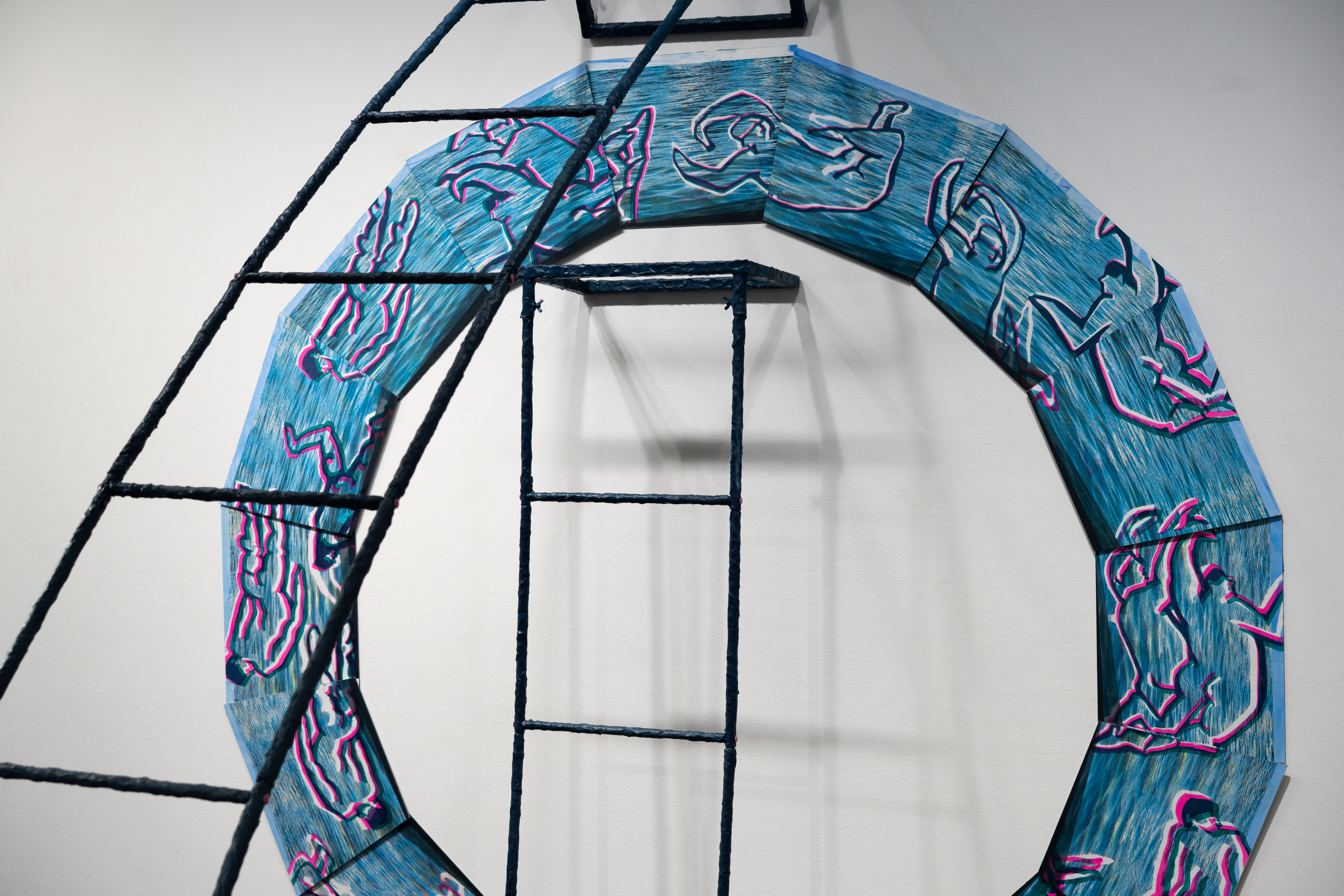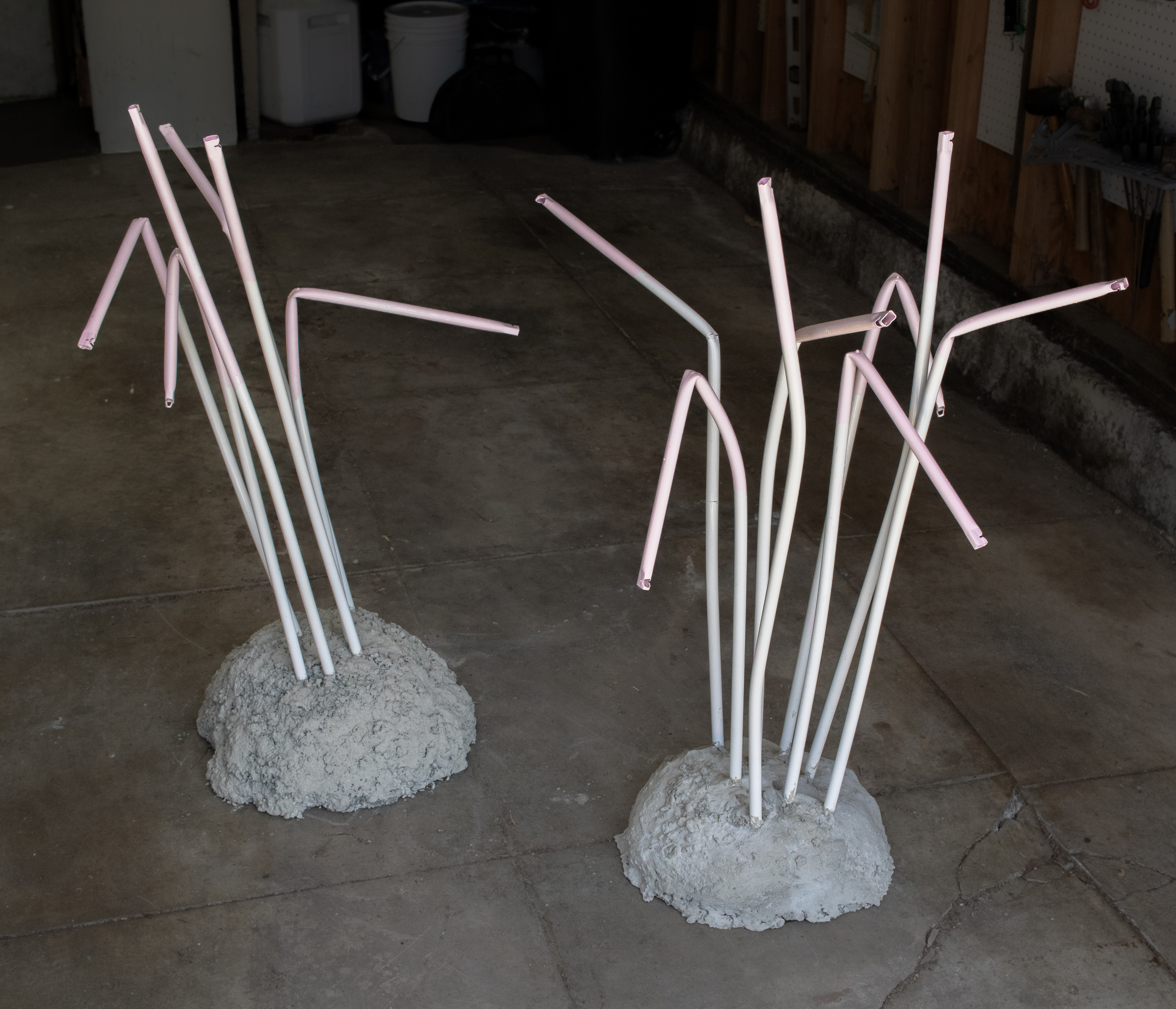 Medium: metal bed supports, house paint, concrete, cement