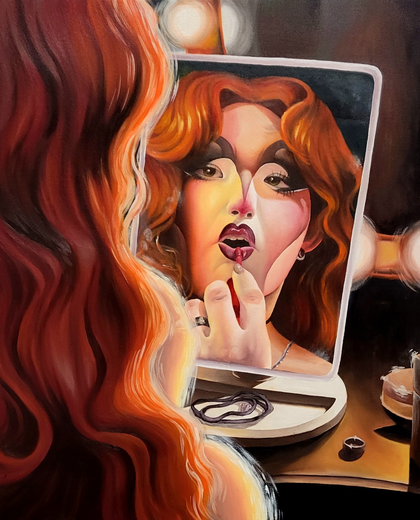 Medium: Oil on canvas and sculpted hemlock wood frame