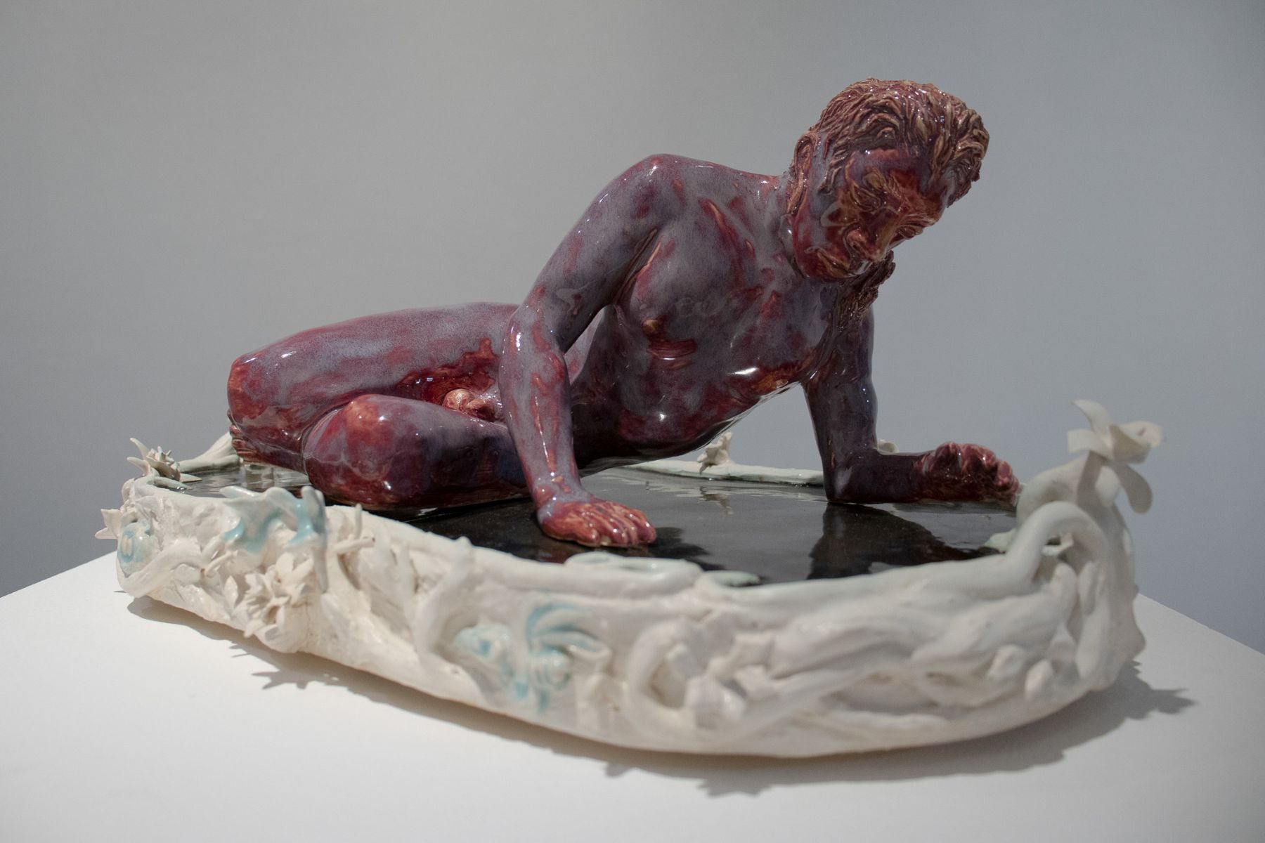 Medium: Felt, laser-engraved porcelain, and glaze.