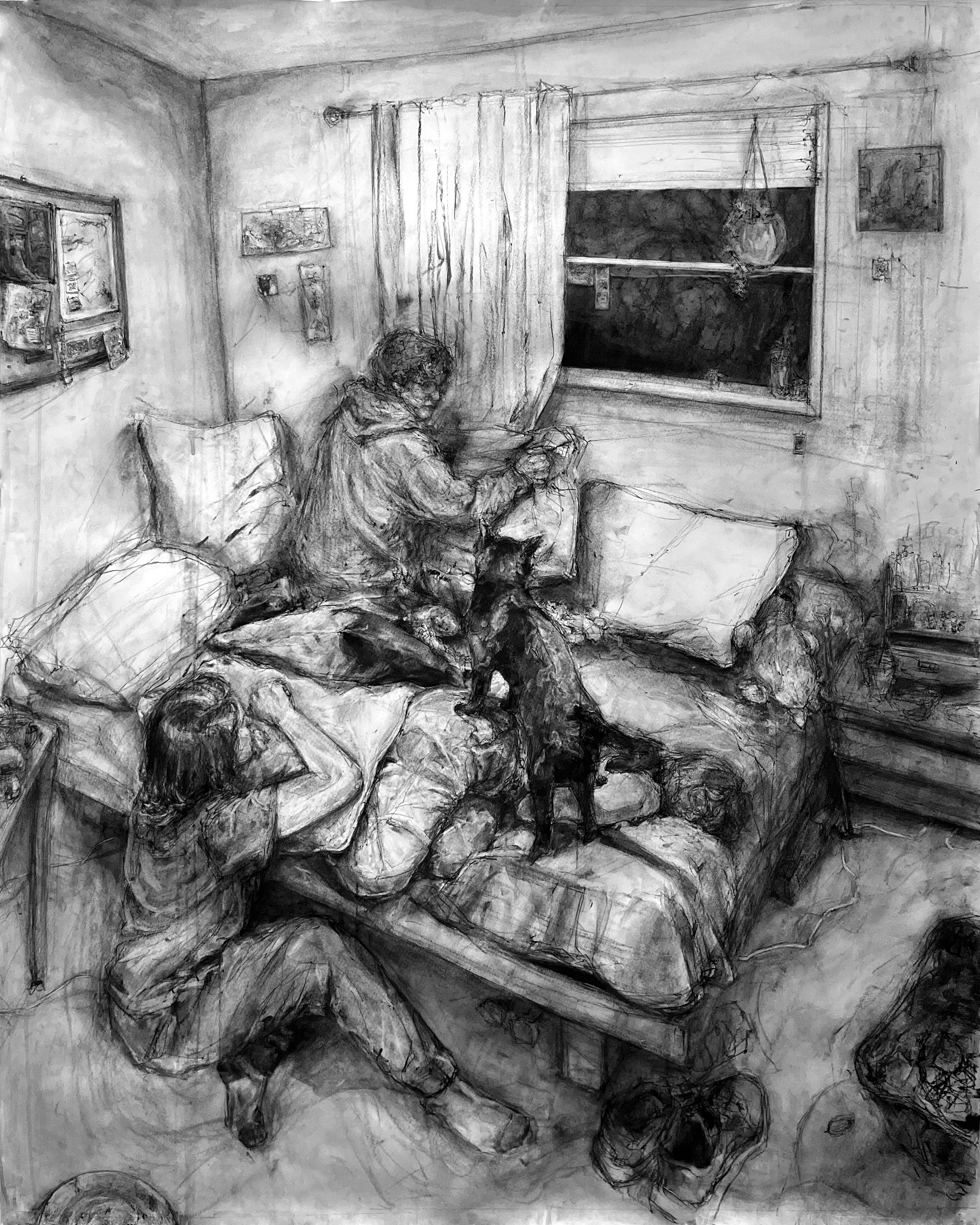 Medium: Charcoal on muslin in artist-built frame
