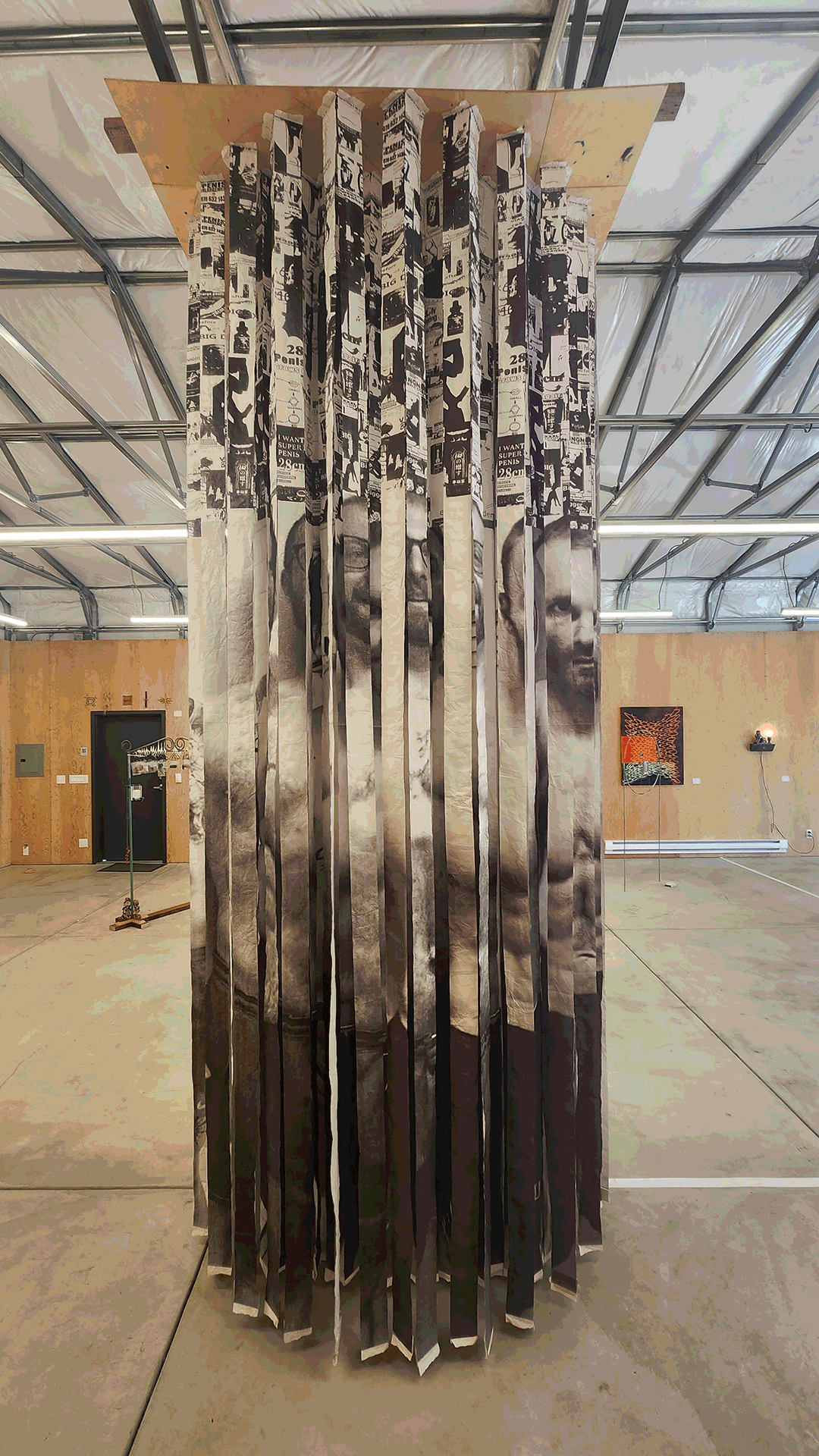 Medium: cotton abaca, iron chain, stoneware, found weaving wrapped in cotton abaca, glaze, plaster